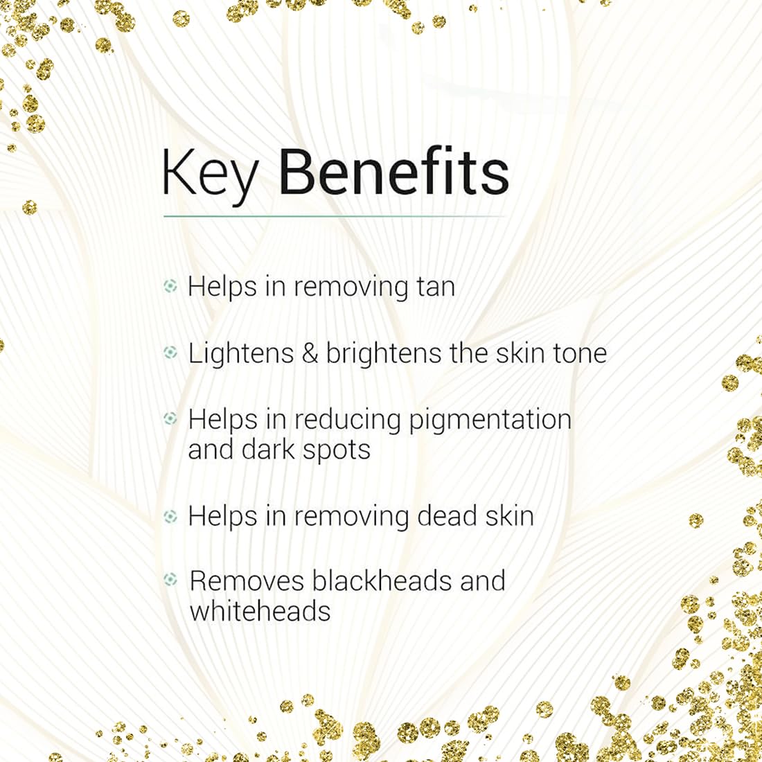 [DEEP CLEANSES] It removes impurities from the deepest layers Enhances blood circulation and lends a natural glow.Get soft rejuvenated and moisturized skin.This scrub evenly polishes your skin removes dead skin cells blackheads impurities and tan. Smells
