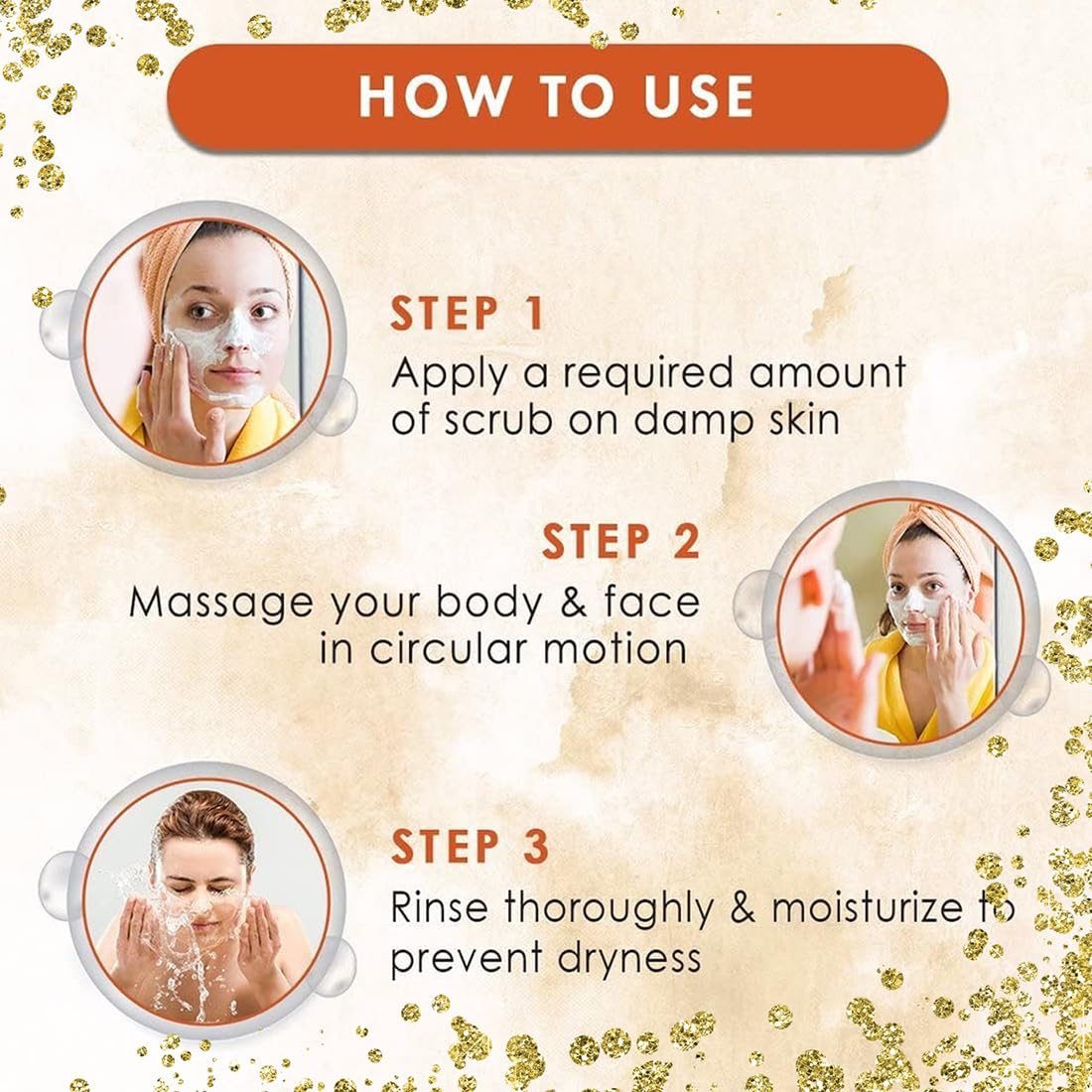 [TAN REMOVAL] Gold Face and Body Scrub enriched with Wheat Germ extracts and give effective tan removal & soft skin.natural oils is an effective cleansing exfoliate which quickly removes blackheads impurities and complexion dulling dead cells to reveal fr