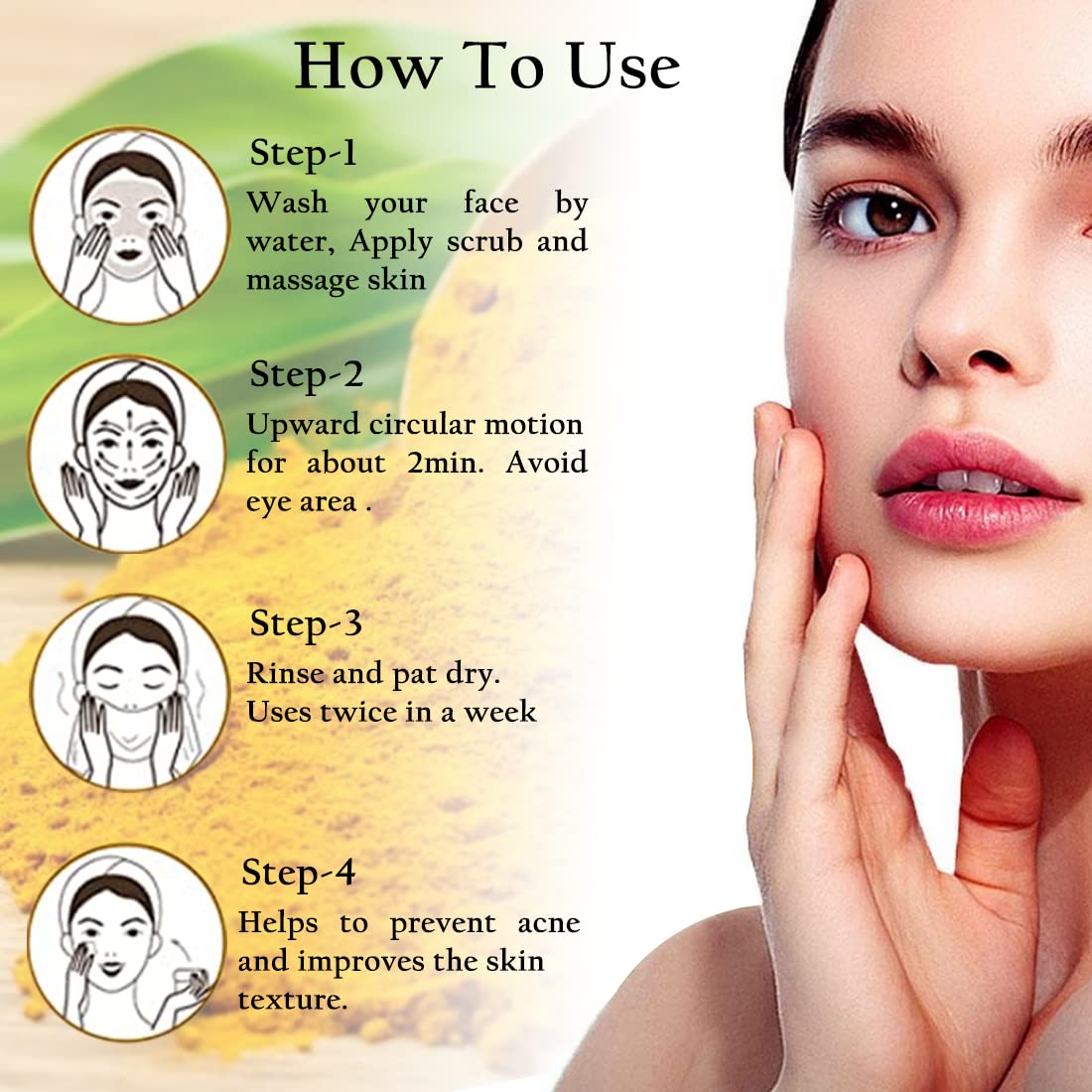Haldi Chandan facial scrub is mild and pH-balanced to gently deep cleanse your pores of impurities while keeping your skin moisturized.