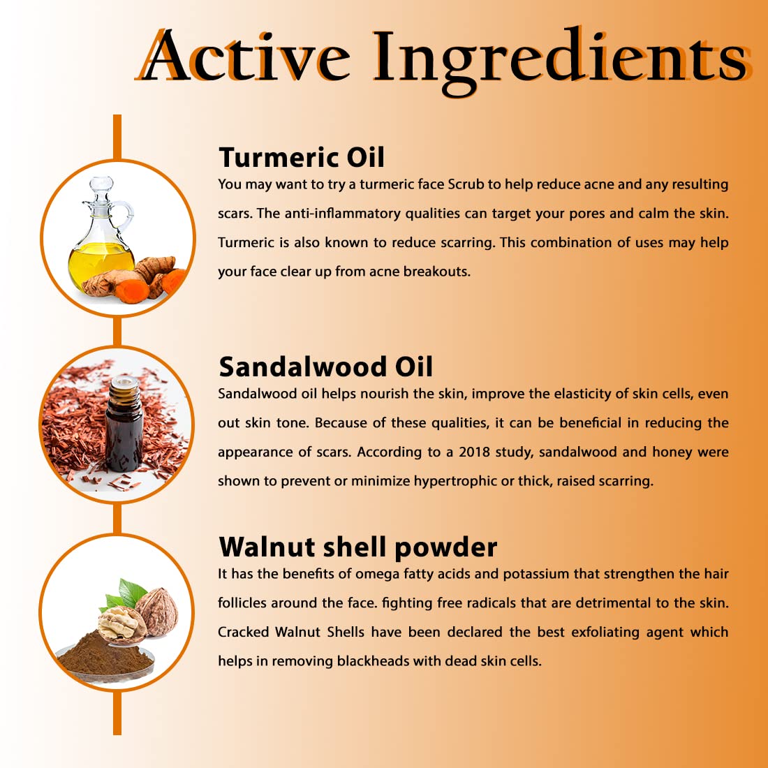 Enriched with the goodness of natural ingredients like sandalwood and turmeric extracts this powerful scrub not only helps cleanse the skin but also helps even out skin tone.
