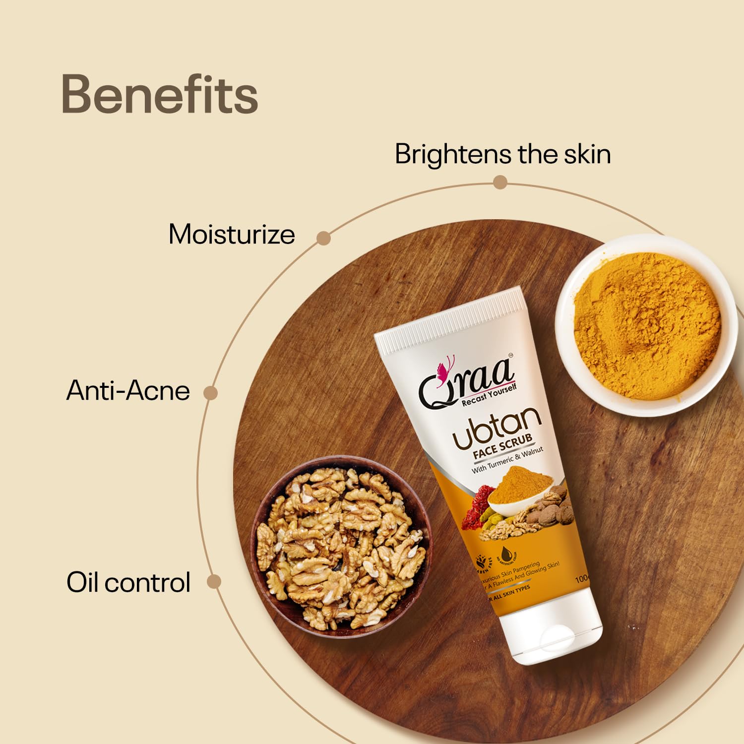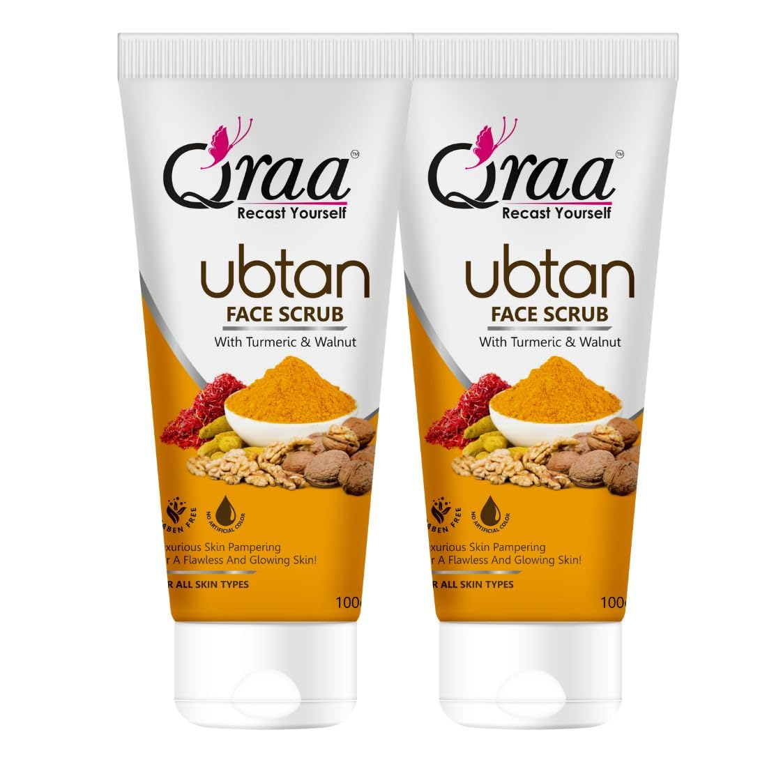 Qraa Ubtan Face Scrub For All Skin Type With Turmeric & Saffron For Tan Removal Glow & Radiance | Pack of 2 X 100g