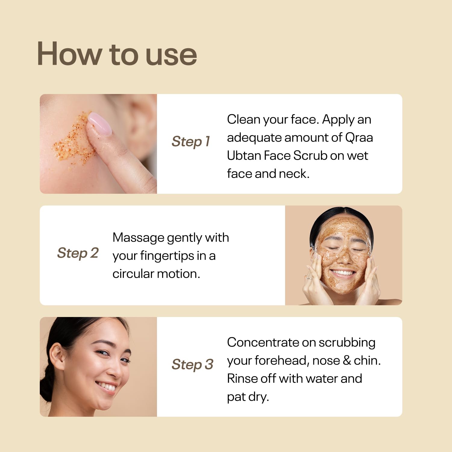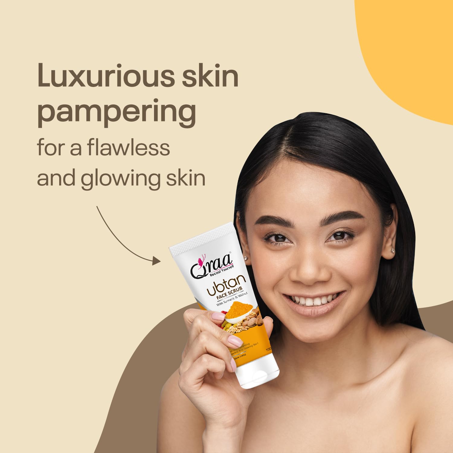 Transform your skincare routine with Qraa Ubtan Face Scrub specifically designed to cater to all skin types.