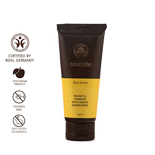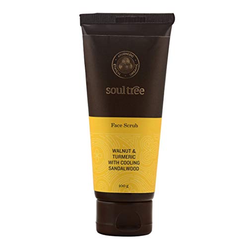 SoulTree Ayurvedic Face Scrub - Walnut & Turmeric With Cooling Sandalwood - 100% Vegetarian 100gm