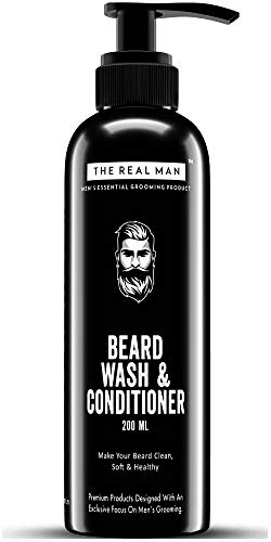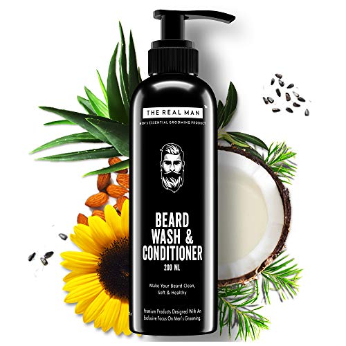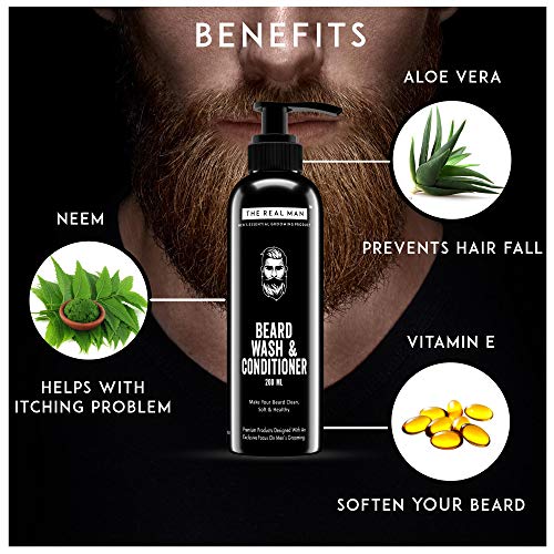 THE REAL MAN Beard Wash & Conditioner(200ML). Cleans and Conditions with Extracts of Aloe Vera | Tulsi | Neem Leaf | Licorice.