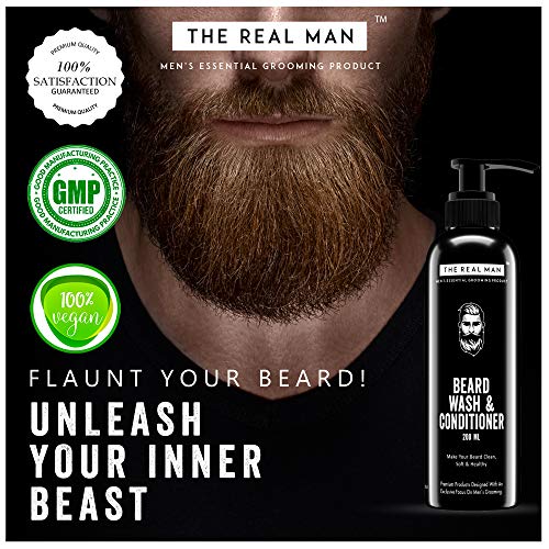 THE REAL MAN Beard Wash & Conditioner(200ML). Cleans and Conditions with Extracts of Aloe Vera | Tul
