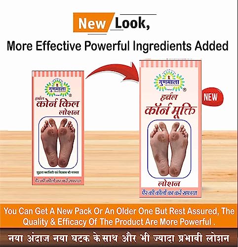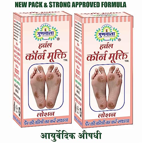 Corn Aren't A Skin Disease. They're Your Body's Response To Pressure Or Friction On The Skin.Corns Are Hard Thickened Areas Of Skin That Typically Occur On The Feet.Hard Corns Are The Most Common Type Of Corn. They're Small Concentrated Areas Of Hard Skin Usually Found Within A Wider Area Of Thickened Skin. Soft Corns On The Other Hand Are Whitish Or Gray And Are Rubbery In Texture. They Often Appear Between The Toes. Seed Corns Are Small And Usually Found On The Bottom Of The Foot. As They Thicken Corns Can Become Quite Painful.Gunmala Corn Kill Lotion Is A Ayurvedic Medicine For The Corn / Gokharu Which Occurs Under The Sole Of Feet . It Is Experimented Ayurvedic Medicine Which Relives From Pain & Pinch In Walking . Tested Medicated Action For The Corn Which Occurs Under The Sole Of Feet & Gives Relief Pain And Pinch In Walking. The Corn Kill Lotion Reduce The Pain Of Your Corn By Reducing The Friction Of Your Corn With Shoes. Corn Kill Lotion Is A Better Solution For The People Who Suffers From The Sore Spot.