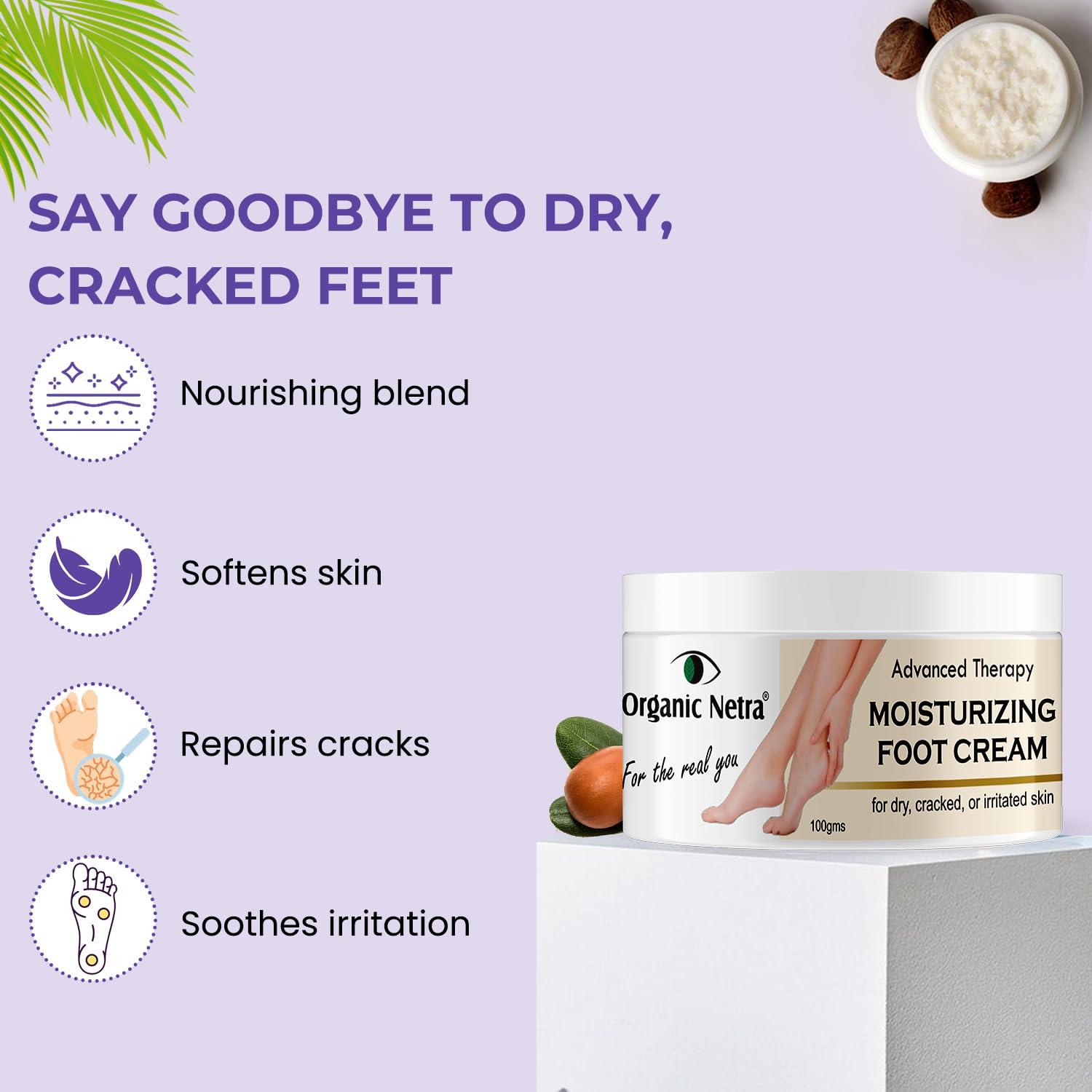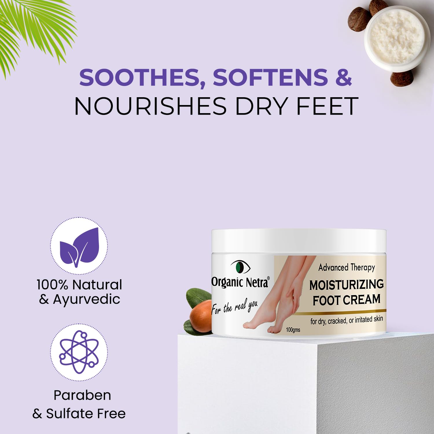 Organic Netra Moisturizing Foot Cream for Dry Cracked & Irritated Skin with Glycerin & Aloe Vera (100g)
