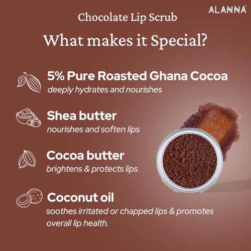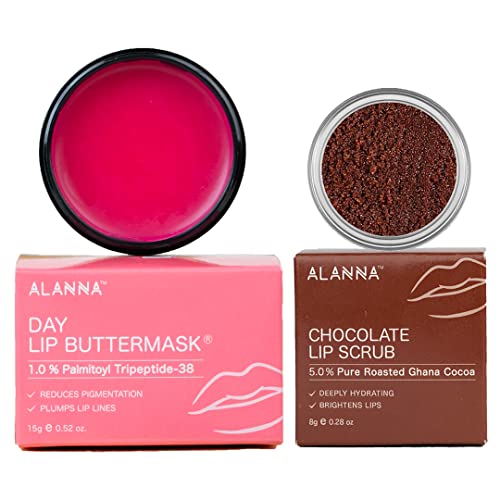 ALANNA® 2-Step Day Lip ButterMask® & Chocolate Lip Scrub | For Lip Pigmentation | Deep Exfoliation | Hydrates & Smoothens | Heals Chapped Lips | Pure Roasted Ghana Cocoa | For Men & Women | 23gm