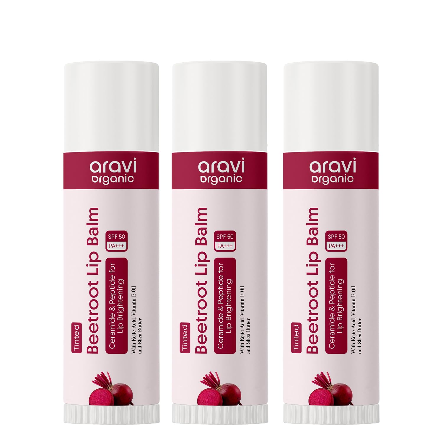 Aravi Organic Tinted Lip Balm is enriched with the goodness of beetroot extract with Ceramide and Peptide this balm offers intense hydration healing and brightening benefits while protecting your lips from sun damage with SPF 50 PA+++. Ingredients like Hyaluronic Acid Vitamin E Oil and Shea Butter deeply nourish and revitalize your lips leaving them soft smooth and naturally tinted. This lip balm is perfect for daily use and ensures your lips stay beautiful and healthy all day.