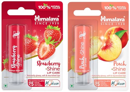 Himalaya Peach Shine Lip Care 4.5gShine with Himalaya herbals naturally glossy peach shine lip care. Our luxurious lip balm moisturizes your lips to keep them soft and supple. The moisture retention formula with skin soothers makes your lips naturally glossy while the antioxidants and natural actives care for your lips by protecting them from environmental damage. Enriched with 100 percent natural color Vitamin E and antioxidants peach shine lip care is free from preservatives petroleum jelly mineral oil and silicone. Key ingredients: Peach kernel oil is a good moisturizing agent that nourishes the skin and is rich in antioxidants which rejuvenate lips. Castor oil has soothing emollient properties that help make lips soft and supple. Directions for use: Apply peach shine lip care evenly and liberally on your lips as often as needed.Himalaya Herbals Strawberry Shine Lip Care 4.5gStrawberry Seed Oil is a rich source of essential fatty acids acts as an excellent emollient and helps maintain the skin's moisture balance.Apricot Kernel Oil is a rich source of Vitamin E and an emollient which effectively moisturizes dry and chapped lips.