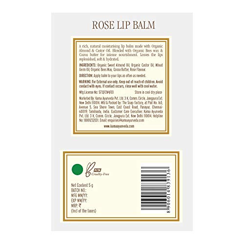 Design Name: Rose, A rich natural moisturising lip balm made with organic almond and castor oil. Blended with Organic Bees wax and Cocoa butter for intense nourishment. Leaves the lips replenished soft and hydrated.