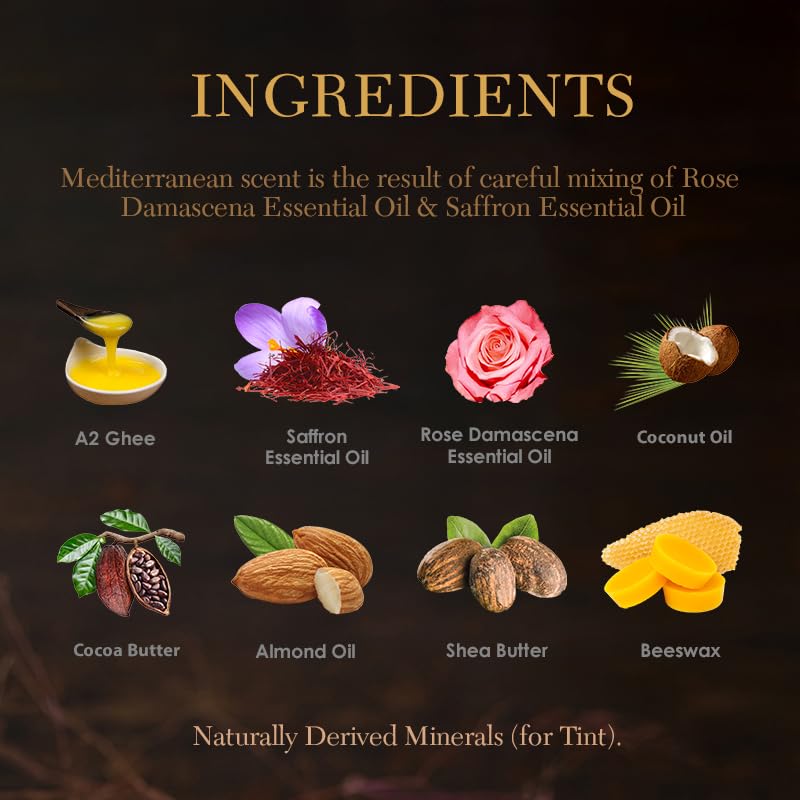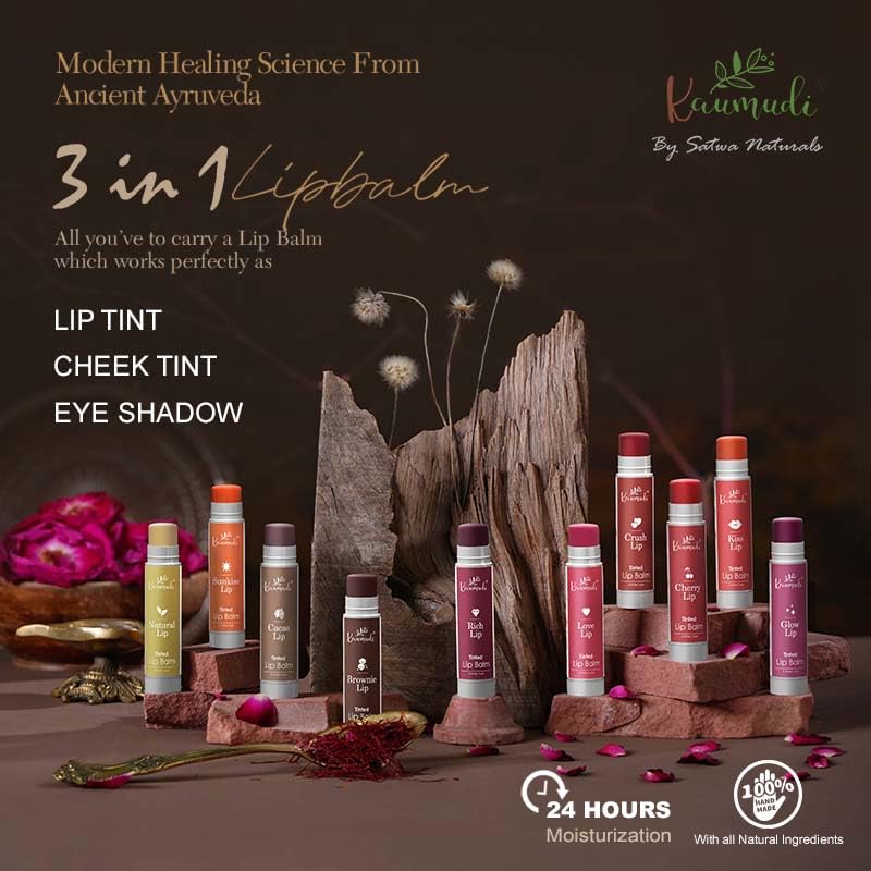 Kaumudi Handmade & 100% Natural 3 In 1 Lip Balm (Lip Tint Cheek Tint Eye Shadow) Made With Rose & Saffron Essential Oil Best For Dry Damaged & Chapped Lips Hydrates & Moisturizes (Crush Lip)