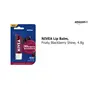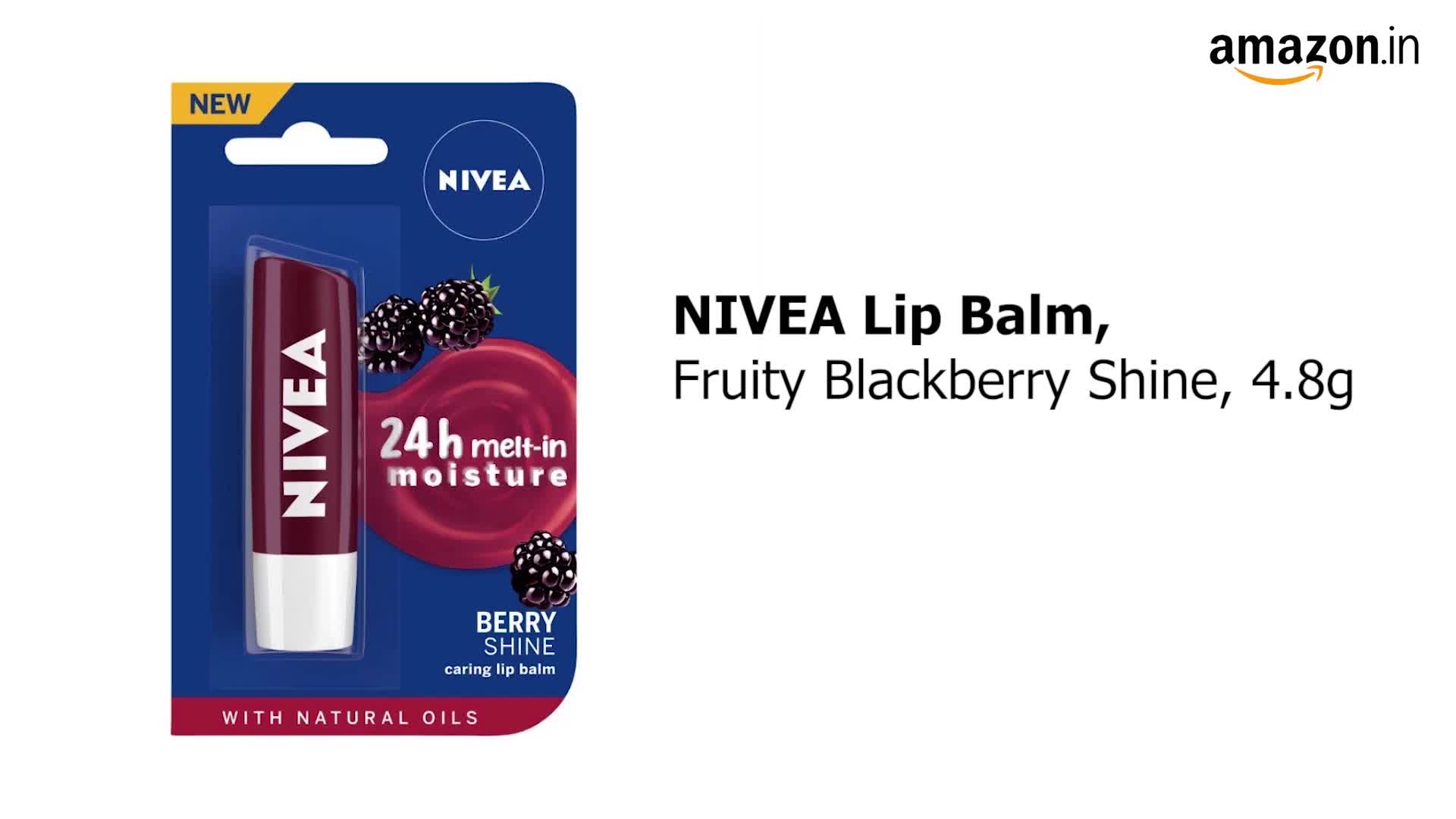 NIVEA Lip Balm Fruity Blackberry Shine 4.8gNIVEA Blackberry Shine Lip Care delights your lips with its delicious blackberry aroma a fabulous shimmer and soft glossy colour. Pamper your lips with its gentle care and long lasting moisturization to get soft and smooth lips long lasting moisturization combined with delightful blackberry aroma and chosen pigments that leave a touch of colour on your lips with NIVEA Blackberry Shine. Your lips care a lot for you now itâs your turn to care for them. NIVEA Blackberry Shine is the new exotic way to love your lipsNIVEA Lip Balm Essential Care 4.8gNivea Original Lip Care nourishes lips that always look and feel their best. Its pampering formula provides rich care and essential protection from drying out for sensationally soft lips.Care Effect-The skin on your lips is much thinner than rest of the body skin it chaps and peels so easily and hence ideally should be kept moisturized with a lip care product. A Lip Balm acts as a lip moisturizer and gives your lips the perfect smooth texture.Experience the rich care of Nivea Original Care with 12 hour care effect.Your lips care a lot for you now itâs your turn to care for them.How it works-The pampering formula with Shea Butter and Panthenol provides a 12 hour care effect leaving your lips sensationally soft and effectively protected from drying out.
