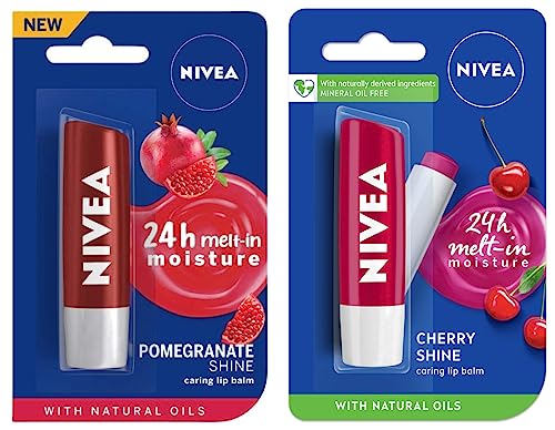 NIVEA Lip Balm, Fruity Cherry Shine, 4.8g And NIVEA Lip Balm, Pomegranate Shine, 4.8g