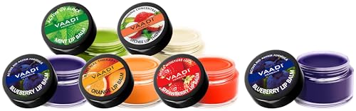 VAADI HERBALS Assorted Lip Balms, 10g (Pack of 5) 100% Natural Lip Balms| For Dry & Chapped Lips | 24hr Hydration | & Lip Balm, Blueberry, 10g