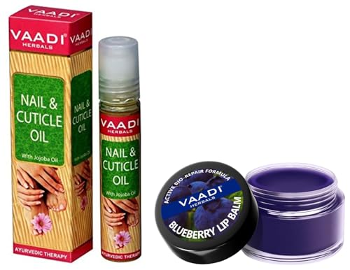 VAADI HERBALS Lip Balm, Blueberry, 10g & Nail and Cuticle Oil with Jojoba Oil, 10ml