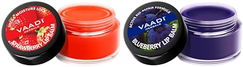 VAADI HERBALS Lip Balm, Strawberry and Honey, 10g & Lip Balm, Blueberry, 10g
