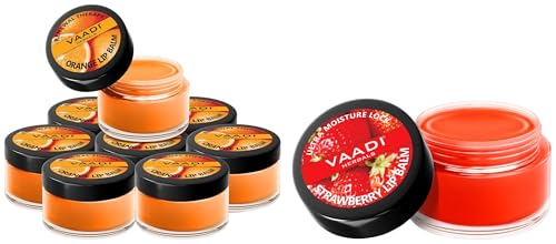 VAADI HERBALS Lip Balm, Strawberry and Honey, 10g & Lip Balm, Orange and Shea Butter, 10gms x 8