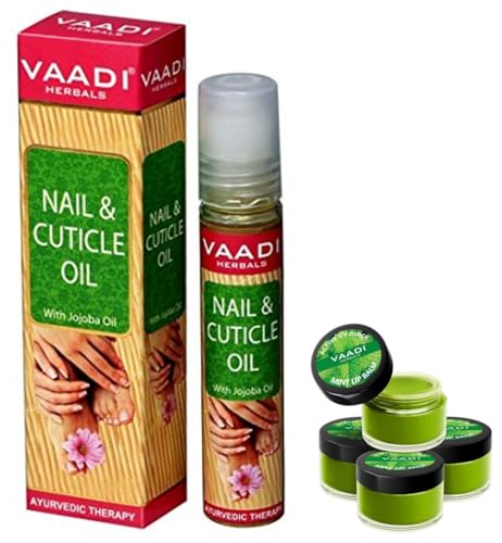 VAADI HERBALS Value Lip Balm, Mint, 4 x 10g & Nail and Cuticle Oil with Jojoba Oil, 10ml