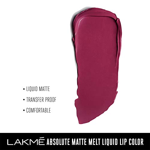Lakme absolute presents matte melt liquid lip â the first ever matte liquid lip formulation. It has 8 irresistible shades ranging from a bright bold red to an intense nude; the shades are crazy tangerine fire starter red vintage pink mulberry feast red smoke wine n dine mild mauve and peach rose. This matte lipstick will make your lips look lush matte and bold. It has a velvety matte finish that delivers a lush suede-like finish. It is long wear; in vivid colors that last through the day. It is a new lightweight formula that feels feather light on your lips and has an intense deep and rich color pay off in a single stroke. It has the ultimate lightweight formula enwraps lips for a long lasting silky comfort without drying your lips. It is completely transfer proof and stays all day. The wand is specially designed to give your lips an even color that can define the lips properly. How to use remove the wand from the barrel. Using the tip of the wand start application on your upper lip from your cupid's bow. Similarly start highlight the lower lip starting from the corner and swiping it for a complete look. Duration: 15 Hours.