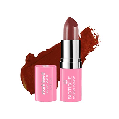 Biotique star kissed moist matte lipstick has a unique matte cream formula that offers a non-drying and uncrackable finish that stays comfortably on your lips through the day. Highly pigmented shades that have rich & intense colour pay-off. Non-drying uncrackable and matte finish that stays comfortably on the lips for long hours. Removal tip: use bio almond makeup cleanser.