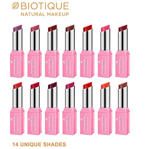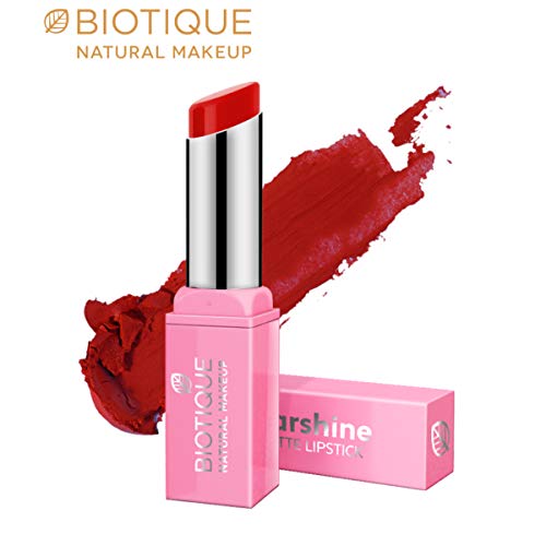 This rich formula has a smooth velvety finish which glides on effortlessly and settles into a beautiful matte finish. Provides intense colour pay-off in every stroke. Biotique starshine matte lipstick has a unique matte cream formula that offers non-drying and stays comfortably on your lips throughout the day. Removal tip: use bio almond makeup cleanser.