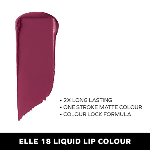 Say goodbye to touch-ups with the new Elle 18 liquid lip colour. Its colour lock formula makes it last way longer than ordinary lipsticks. So|| now you can enjoy your day without worrying about your lip colour fading away. The Elle 18 liquid lip colour has a super lightweight texture yet gives you that rich matte finish you will absolutely love. The lightweight matte formula makes your lips feel soft and comfortable and the intense matte colour glams up your look. It has a one-stroke payoff that lasts long and doesnât weigh down your lips|| so you can enjoy your day without worrying about touch-ups. Add to that|| itâs extremely easy to apply too. Start by defining your cupidâs bow|| then smoothly glide the lip colour to the outer edge of both your upper and lower lips and you're done! You've got super-fun and gorgeous lips you can rock with any look. Available in 20 trendy shades|| you now have gorgeous lips with so many fun colors to choose from Get ready to stand out in every picture with your long lasting and intense matte look. Want to try it? Go ahead and grab your Elle 18 liquid lip colour today.