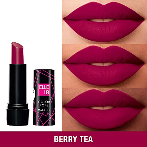 Elle 18 Matte, Glossy Finish Nail Pops Color 161, 5 Ml & Elle 8 Lipstick Berry Tea (Matte)