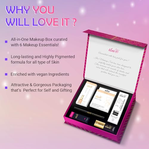 Iba Makeup Gift Set for Women (Fair) | Foundation, Compact, Primer, Lipsticks, Kajal | Long Lasting | Full Coverage | Bridal Makeup Kit for Women | 100% Vegan & Cruelty-Free (6 items makeup combo in the one set)