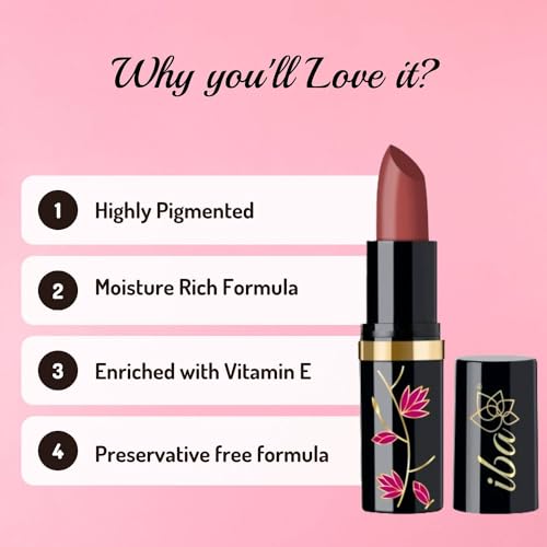 Iba Pure Lips Moisture Rich Limited Edition Lipstick for Women - E01 Perfect Nude, 4g | High Glossy, Creamy Finish & Smooth Texture| Hydrated Lips | Enriched with Vitamin E, Coconut Oil & Shea Butter | Intense Colour & Highly Pigmented | Lip Makeup