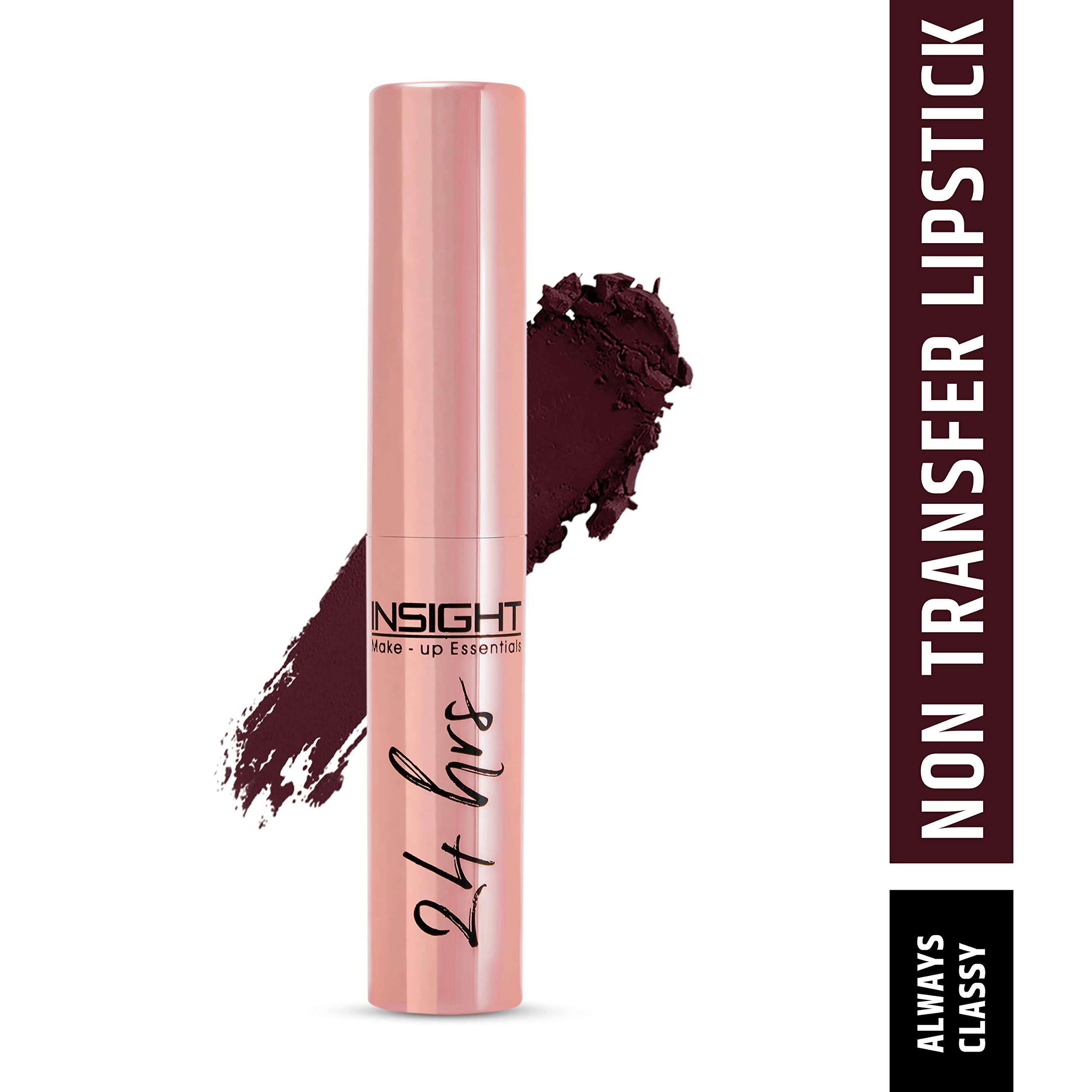 Insight Cosmetics 24 Hrs Non Transfer Matte Lipstick |Matte Finish |Lightweight Lipstick |Lasts For 24Hrs |Nourishes Lips & Great For Daily Use |Highly Pigmented(LL03-22)INSIGHT NON-TRANSFER LIPSTICK FEATURES A CREAMY NON-DRYING AND WATER-RESISTANT FORMULA THAT SETTLES TO AN OPAQUE MATTE FINISH WITHIN FEW MIN. THIS LIPSTICK FEATURES A TWO-IN-ONE FORMULA THAT COMBINES INTENSE PIGMENTS WITH A NONTRANSFERABLE FORMULA THAT LOCKS IN COLOR AND PROVIDES A COMFORTABLE WEAR ALL DAY. THIS TRANSFER-PROOF LIPSTICK FEATURES A PLUSH PIGMENT-RICH FORMULA. THIS PIGMENT RICH LIPSTICK DELIVERS INTENSE COLOR PAY-OFF IN JUST A SINGLE SWIPE. AVAILABLE IN RICH AND LONG-LASTING COLORS. ENRICHED WITH EMOLLIENTS LIKE VITAMIN E WHICH PROVIDES MOISTURIZATION.THIS PRODUCT IS FREE FROM MINERAL OIL AND PARABENS.Insight Cosmetics Matte Lipstick |Long Lasting Lipstick for Women |Keeps Lips Moisturised |Single Swipe Application |Smooth & Light Weight |One Swipe Pigmentation(L-21=03)INSIGHT introduces a range of super creamy matte lipstick's that glide on seamlessly to deliver a soft matte finish. Each shade from this range features a highly pigmented formula and delivers a high colour pay off in just one application. Super long wearing this lip colour does not fade and stays put all day long.