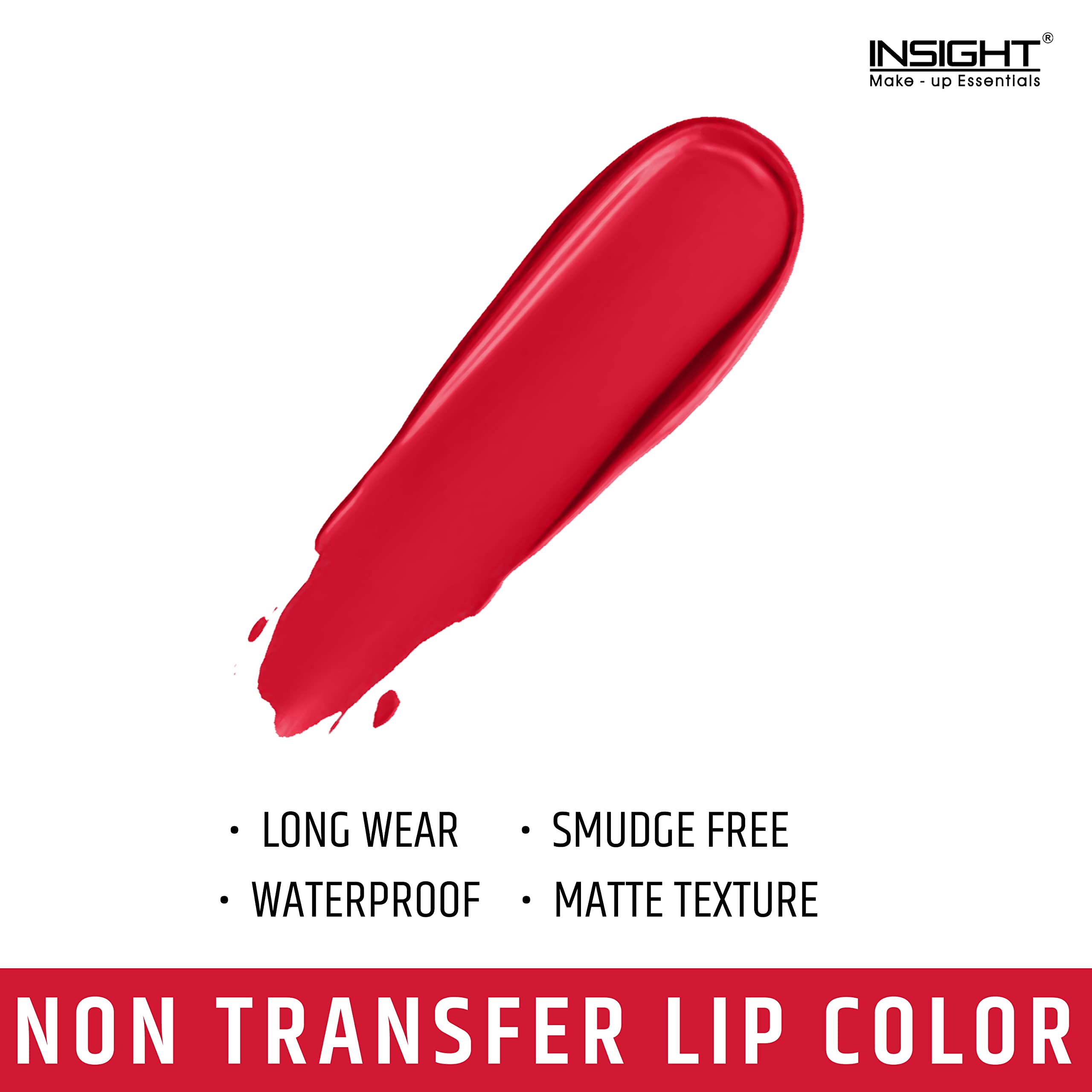 Insight cosmetics non-transfer lip colour features a sophisticated non-transfer lip colour formula that glides on flawlessly in one smooth application with no need for a second coat. It delivers an impressive long-lasting velvety colour that will not transfer and stay all day long. The weightless formula will provide you with comfortable 24-hour wear without flaking. The hydrating base helps to moisturize your lips and prevent them from excess drying.
