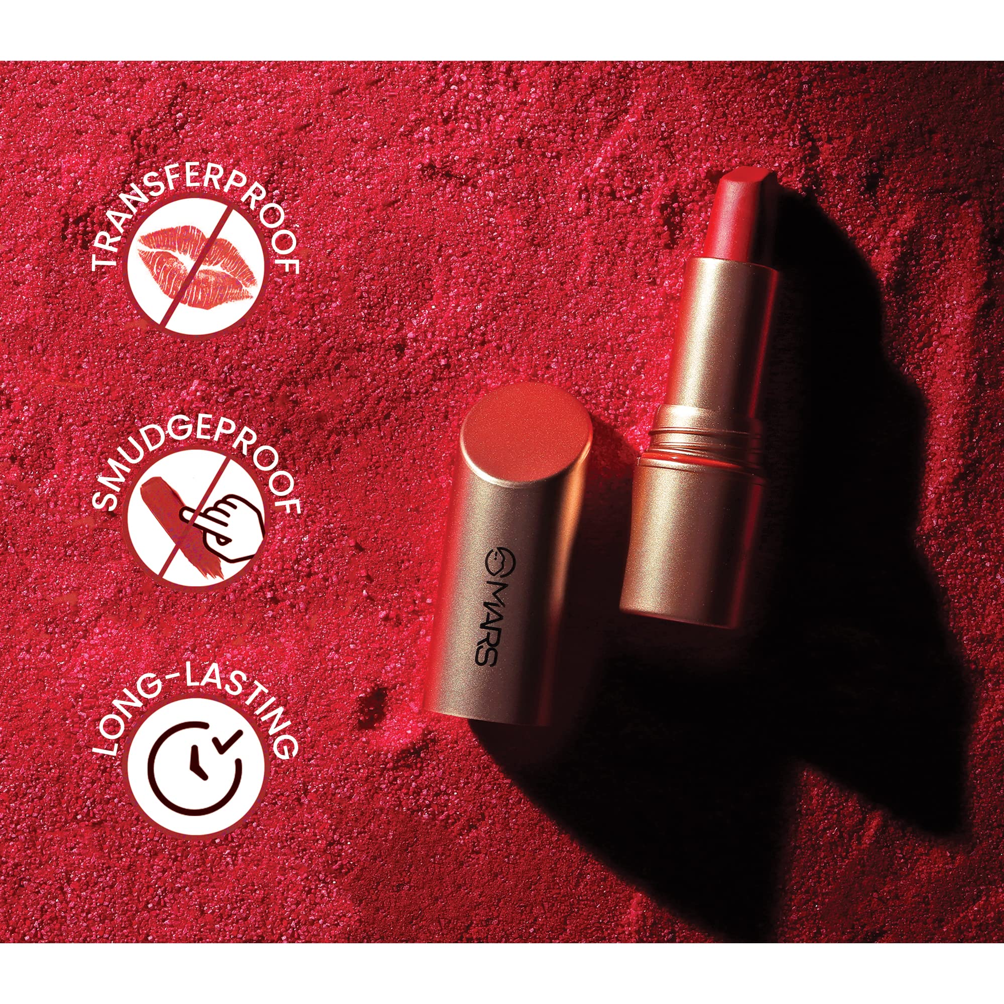 • TRANSFERPROOF: Kiss-proof and transfer-proof MARS Matinee Lipstick As they last for a long time these lipsticks are excellent for daily wear. Untransferable protection for rich and vibrant color.