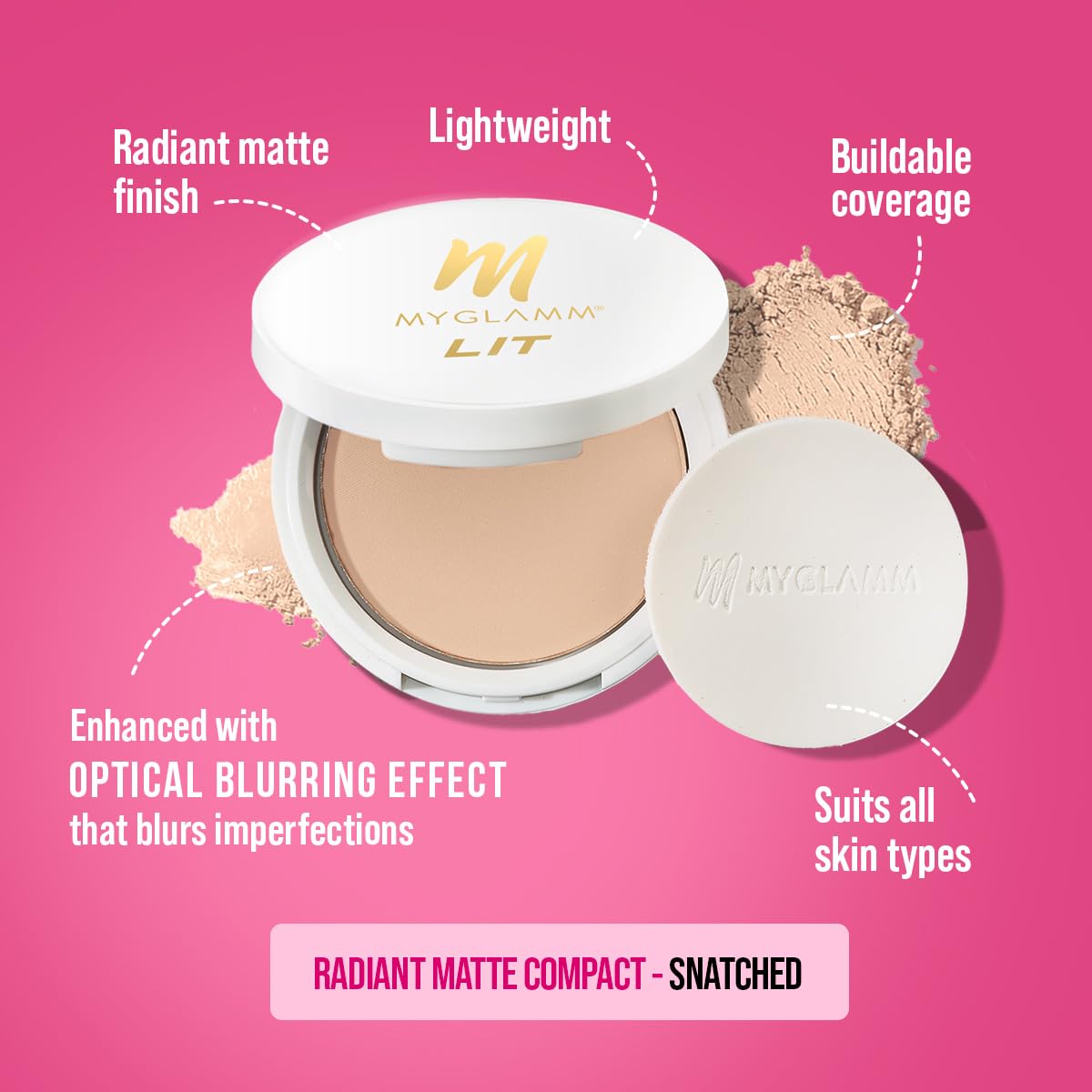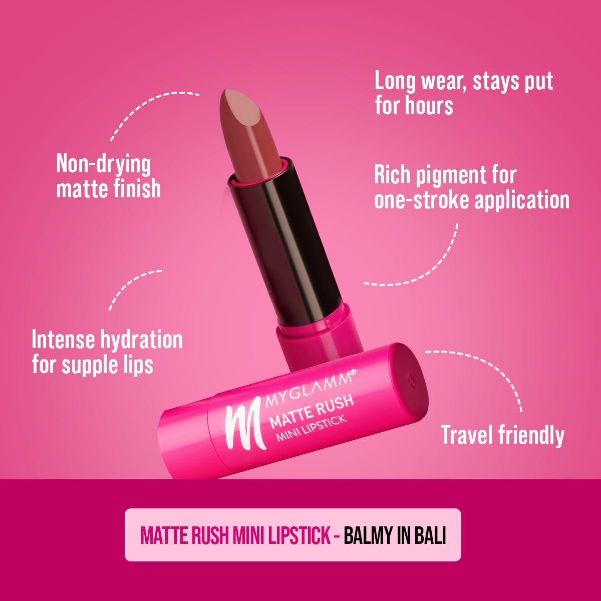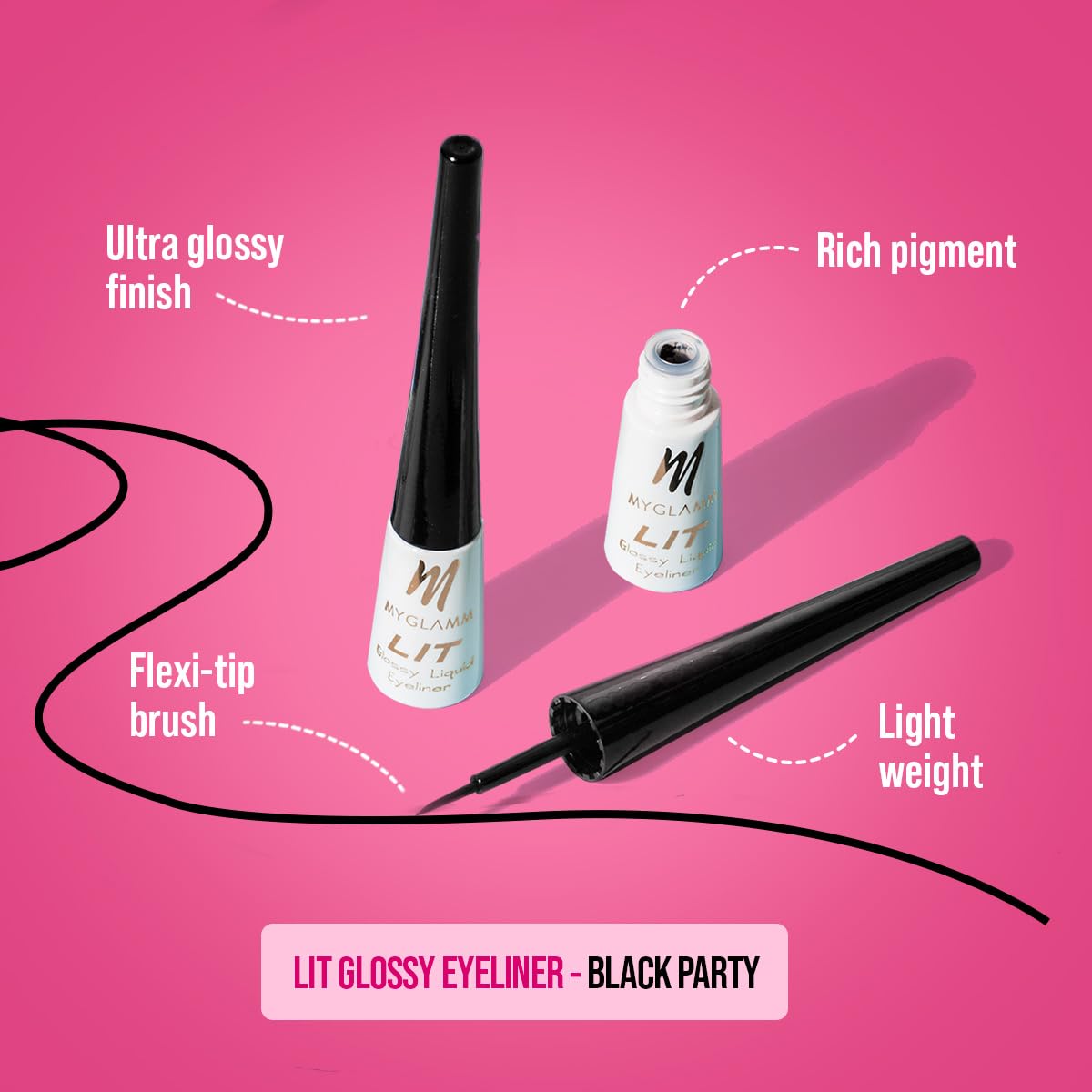 Here's your new go-to makeup kit to get your glamm on. Minimal everyday or a glamm night makeup look - this kit has got your back! Super Kohl Long Stay Kajal for eyes that âscream' drama LIT Radiant Matte Compact Powder to perfect your base LIT Matte Rush Mini Lipstick for statement lips LIT Glossy Eyeliner to wing it like you mean it LIT Nail Enamel for salon-like manis at home