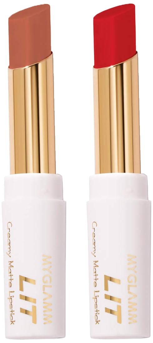 MyGlamm LIT Creamy Matte Lipstick-Old Fashion (Brown)- 3.7gm & MyGlamm LIT Creamy Matte Lipstick-Bloody Mary (Red)- 3.7gm