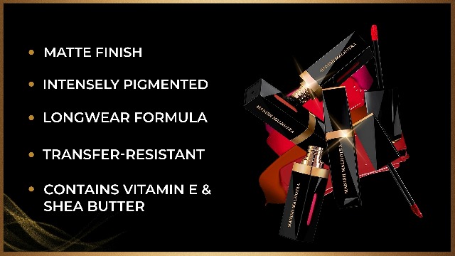 A transfer-resistant liquid matte lipstick that transforms you into a showstopper in one swipe. Enriched with Vitamin E and Shea Butter that drenches your lips in moisture and gives you an oh-so-smooth matte finish. Featuring 8 shades in a high-pigment long-lasting formula for a pout that rules. So take that magic lipstick wand and cast a spell already!
