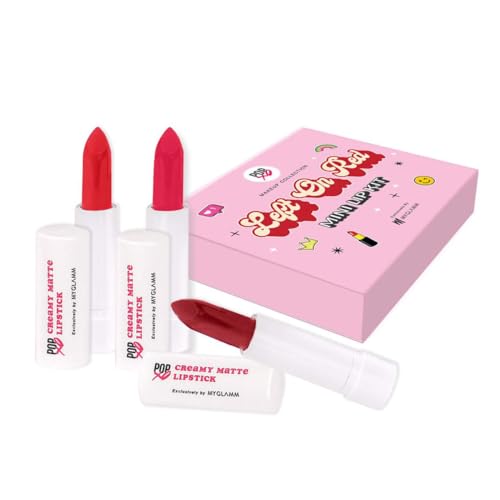 MyGlamm Ultimatte Long Stay Matte Liquid Lipstick - Plum Beauty (Burgundy) | Long Lasting Lipsticks for Women with 8hr Stay | No-Smudge & Waterproof | Intense Colour | Moisturising Formula | 2.5mlThe MyGlamm Ultimatte Long-Stay Matte Liquid Lipstick is a highly-pigmented miracle formula enriched with Vitamin E and glides on easily resulting in a matte finish that doesn't settle into lip lines. In just a single stroke it'll give you a full burst of color that lasts for up to 8 hours while keeping your lips well-hydrated and nourished â making it the perfect choice for everyday wear.MyGlamm POPxo Makeup - Mini Lip Kit - Left On Red - 7.5gm (Set of 3) | Creamy Matte Red Shade Lipsticks| Long Lasting & PigmentedThis Lip Kit includes 3 irresistible pink lipsticks - a light medium and bold lippie - one for every mood duh. These mini lipsticks have a creamy matte formula that glides on the lips smoothly and wears comfortably for long hours. The pigmented formula delivers rich colour payoff in one swipe & is designed to be suitable for all Indian skin tones.