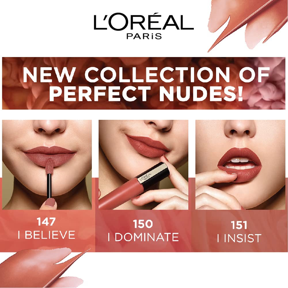 L'Oreal Paris Lipstick Liquid Format with Matte Finish Oil-In-Water Formula Breathable and Lightweight Feel Non-Flaking Colour: 148 I Hunt 7ml