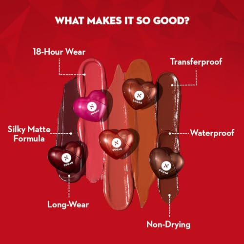 Make your lips meet SUGAR's Limited-Edition La La Love 18HR Liquid Lipsticks. Housed in a Cupid-approved mini heart packaging these irresistible sleek matte liquid lipsticks with a full-coverage formula glide seamlessly and stay on your lips all night long (kisses...keep them coming!). Delivering super soft pout these transfer-proof all-day wear lippies will surely make your heart go Ooh la la!