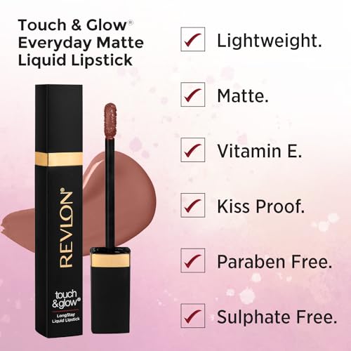 Revlon Touch & Glow Everyday Matte Liquid Lipstick|Lightweight, Transferproof, Kiss Proof, Non Sticky infused Vitamin E|Parabeen & Sulphate free -Nude Elegance