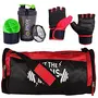 5 O'CLOCK SPORTS Gym Bag Combo Set Enclosed Spider Shaker 500 ML (Green) with Red LTGB Printed Logo Gym Bag and Lycra Gloves (Red) for Men Fitness ll Gym & Fitness Kit