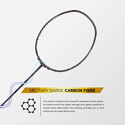• military grade carbon fibre: the racket is made of ultra strong ipn japanese carbon graphite material which has higher strength and rigidity properties. it avoids frame deformation and twisting provides you a more stable and accurate attack point.
