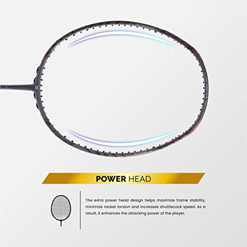 • power head: the extra power head design helps maximize frame stability minimize racket torsion and increases shuttlecock speed. as a result it enhances the attacking power of the player.