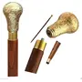 BIJNOR - METAL INLAY IN WOOD Handmade Wooden Folding Walking Stick 36 Inches - Handcrafted Walking Cane with Brass Round Handle - Gifts Ideas