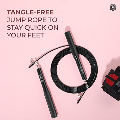 Boldfit Aluminium Skipping Rope for Men and Women Jumping Rope With Adjustable Height Speed Skipping Rope for Exercise Gym Sports Fitness Adjustable Jump Rope for Skipping Skip Rope - Black