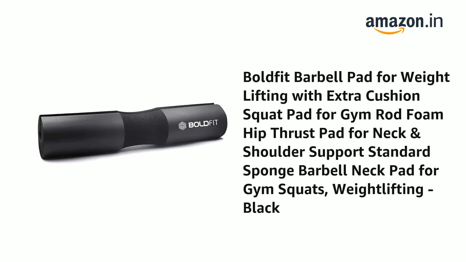 Boldfit Barbell Pad For Weight Lifting With Extra Cushion Squat Pad For Gym Rod Foam Hip Thrust Pad For Neck & Shoulder Support Standard Sponge Barbell For Gym Squats Weightlifting - Black - Foam