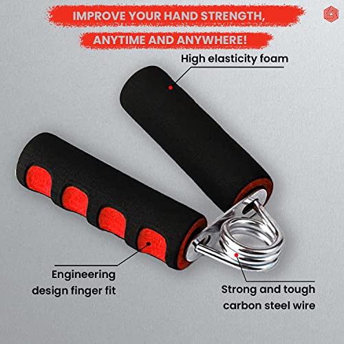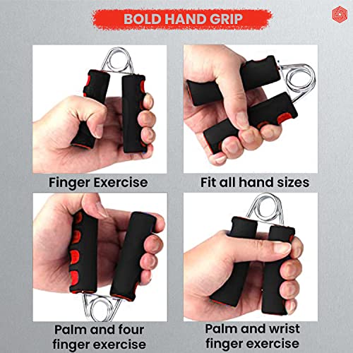 HomeHealth & PersonalSports & fitnessSports EquipmentsBoldfit Hand Grip Strengthener with Foam Handle, Hand Gripper for Men & Women for Gym Workout Exercise Equipment to Use in Home for Forearm Exercise, Finger Power Gripper Red-Black