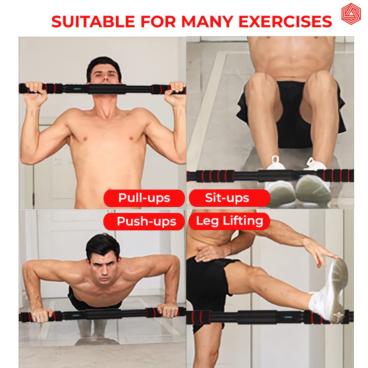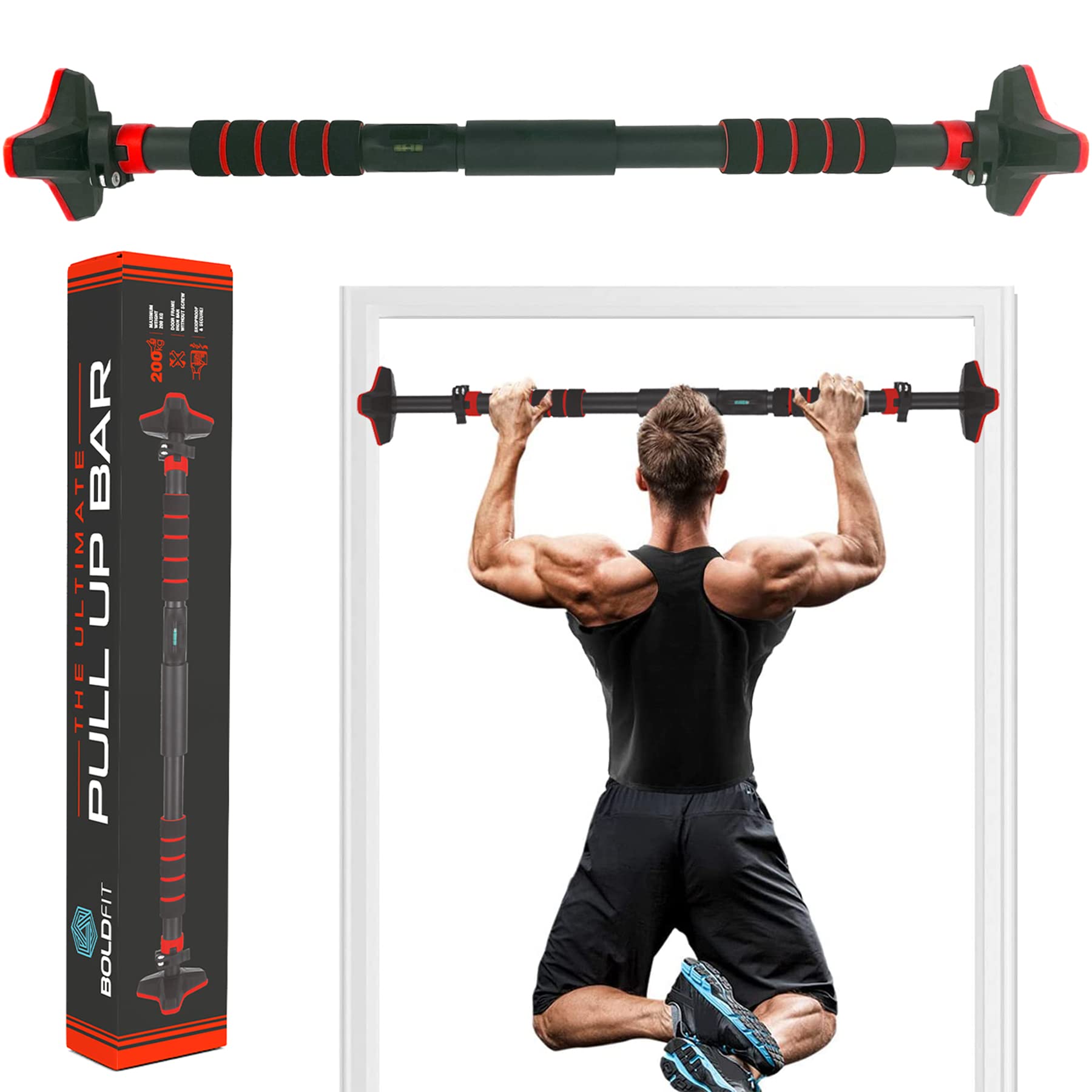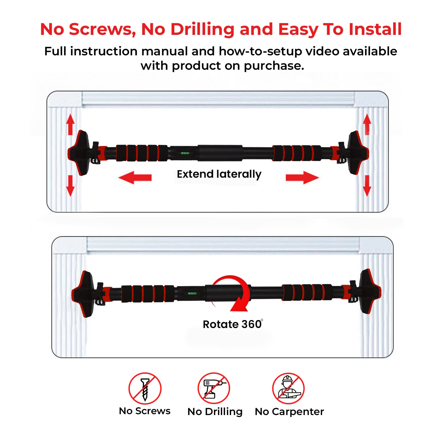 HomeHealth & PersonalSports & fitnessSports EquipmentsBoldfit Pull Up Bars For Home Workout Chin Up Bar Gym Accessories for Men Door Way Adjustable (72-104 Cms) Hanging Rod Without Screw Anti-skid Grip Strength Training Exercise Bar Pullup Bar RedBlack