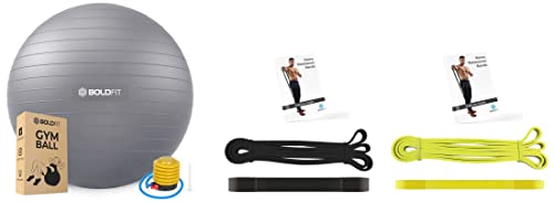 Boldfit Unisex PVC Gym Ball for Exercise & Yoga with Pump (Grey, Size - 65 cm)