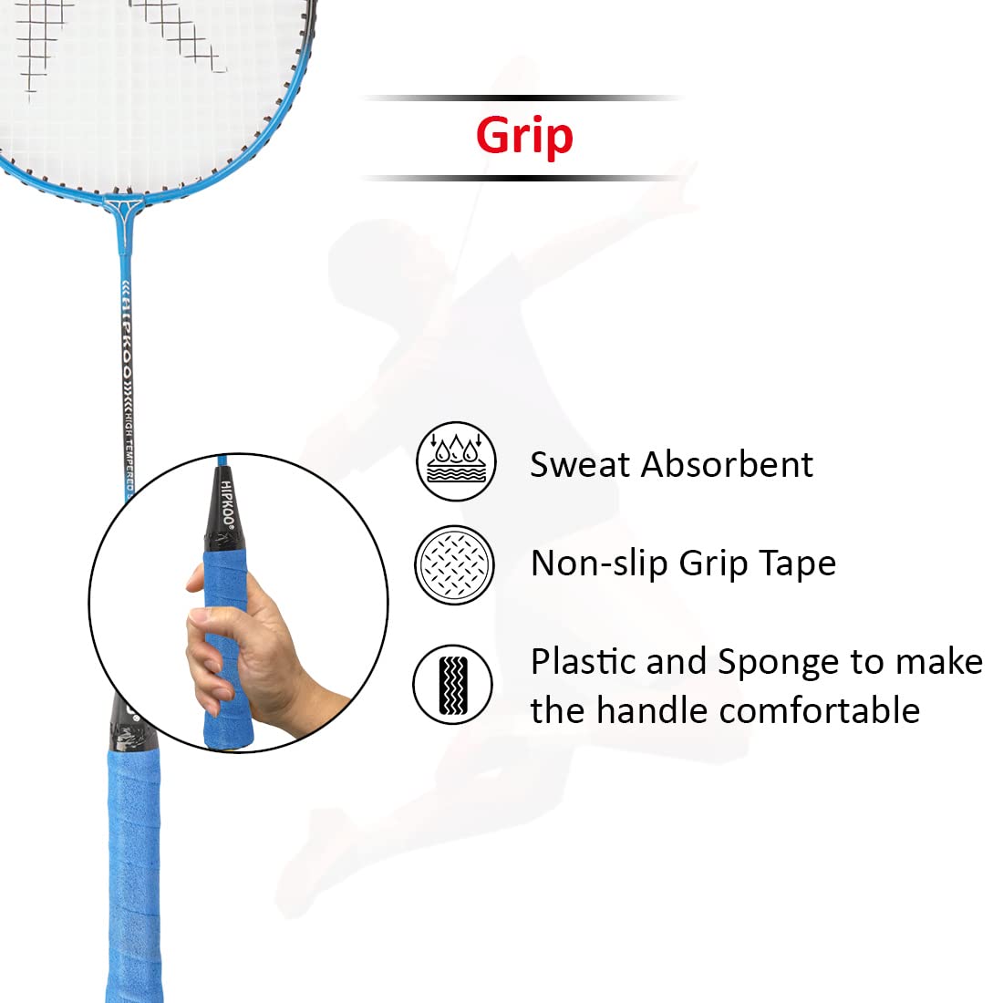 Hipkoo Sports Entire Aluminum Badminton Rackets Set of 2| Wide Body Shuttle Bat with Cover 10 Shuttles and Net| Ideal for Beginner| Lightweight and Sturdy